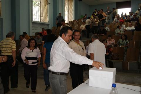 Durante las votaciones del día 15 eligieron a dos representantes propietarios, ellos son: Lic. Joel Franco Franco, docente de Ciencias Sociales, quien obtuvo 69 votos; Licda. Rhina Franco Ramos, docente de Idiomas obtuvo 68 y como suplente fue electo Lic. Juan Carlos Cruz, docente de Idiomas, con 58 votos a favor. Para éste día fue electo como suplente el Lic. Wilfredo Hernández Cortez, docente de Filosofía.