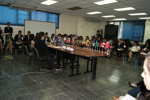 En el ensayo los jóvenes representaron naciones para abordar la temática: la Infancia y la juventud como sectores co - partícipes en el desarrollo sostenible de los países del continente americano.