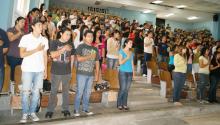 Los estudiantes de nuevo ingreso 2012 de la Facultad de Ciencias y Humanidades se abocaron al Auditórium 4 para recibir la bienvenida oficial por parte de las autoridades de la instancia académica.