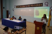 En la actividad participaron como ponentes: Concepción de María Roque, representante del Movimiento Salvadoreño de Mujeres y María Gloria Anaya Perla, diputada del PARLACEN.