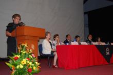 La Licda. Norma Cecilia Blandón de Castro, Vicedecana de la Facultad de Ciencias y Humanidades participó en el evento inaugural. Durante su intervención la vicedecana habló de la incursión y el proceso actual de la UES en la formación docente.