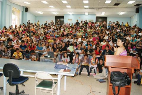 La ingeniera Kelly Xiomara Aguilar Flores, Administradora Académica Interina de la Facultad de Ciencias y Humanidades, realizó una presentación inductiva a los alumnos de nuevo ingreso en el auditorio No. 4, el 20 de febrero de este año.