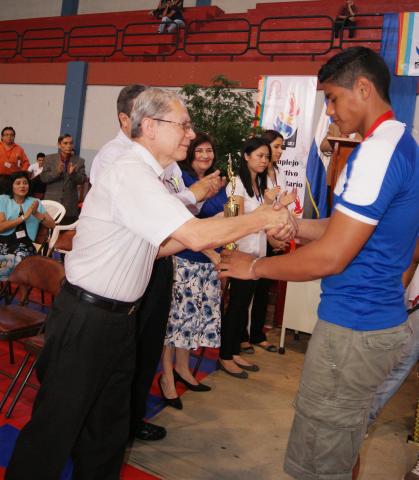 El estudiante Ronald Chávez recibió trofeo al agenciarse el segundo lugar, en la categoría de “Mejor Levantador”. La actividad contó con la presencia de la Licenciada Ana María Glower, Rectora en funciones y el Lic. Salvador Castillo Arévalo, vicerrector administrativo.