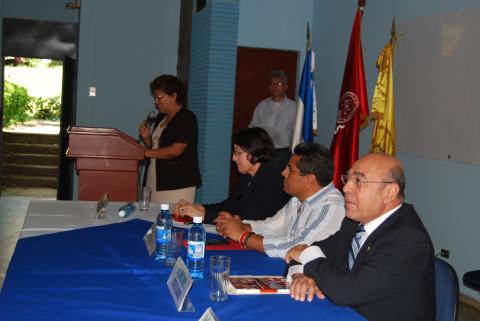 En la actividad participaron La Maestra Ana María Glower de Alvarado, Vicerrectora Académica de la Universidad de El Salvador; Maestra Norma Cecilia Blandón de Castro, Vicedecana de la Facultad; Maestro René Pineda, Jefe de la Escuela de Ciencias Sociales.
